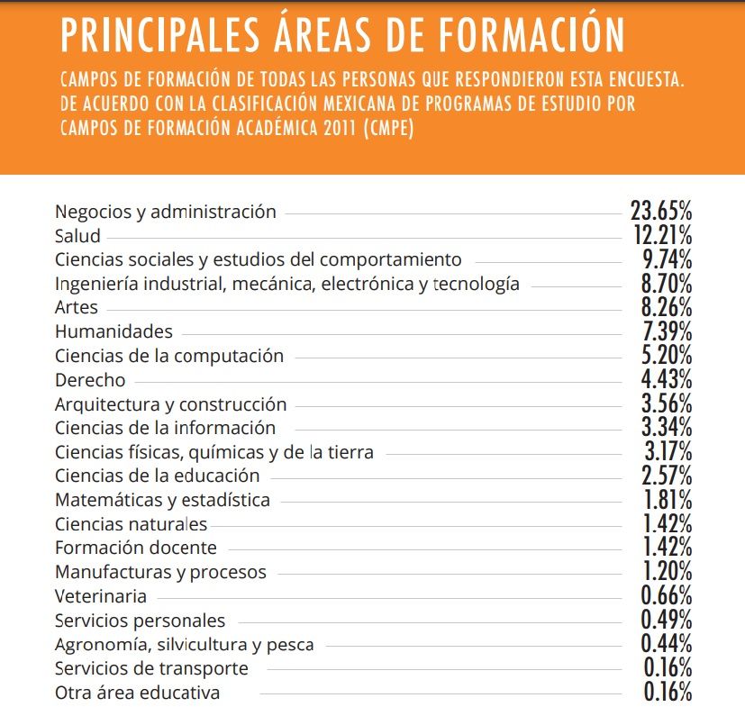 3. 1 de cada 10 enfocan sus formación en Ciencias Sociales y estudios del comportamiento.